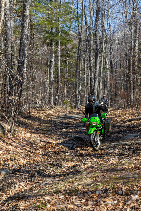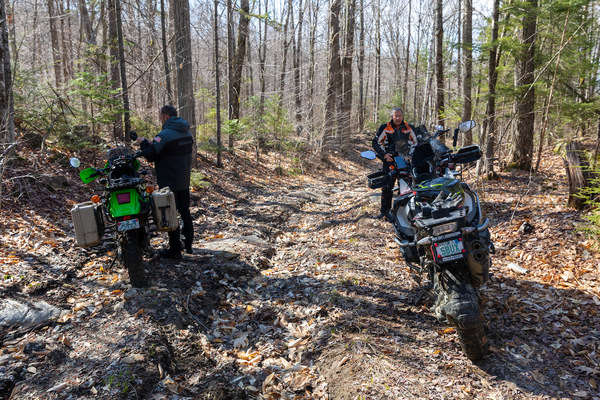 | Duncan is the Yankee Beemers President and he approached me a month ago asking if I would design an off road ride for GS bikes. I of course said yes and I started thinking of a few roads in that area worth riding. I put together an initial ride based on some day trips in the Rumney New Hampshire area and built the route in Garmin Basecamp which always runs hilariously slow on my Core i9 iMac with 16 cores and 96 gigabytes of RAM. I went out a week later with friends during the peak of mud-season and ran a few of the roads as a group. It was a blast…a very wet and sloppy blast. |