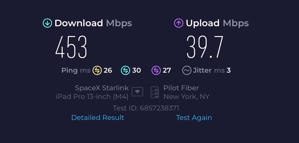 There have been zero downsides of this setup and I’ve since learned a dozen of my colleagues are also Starlink customers in rural Vermont because of course we are. I probably will cancel the service in 4-months when I move back home since XFinity is $89 a month and 2X the download speed (upload speed is about 10% faster with Starlink) but any skepticism I had about this technology is gone.