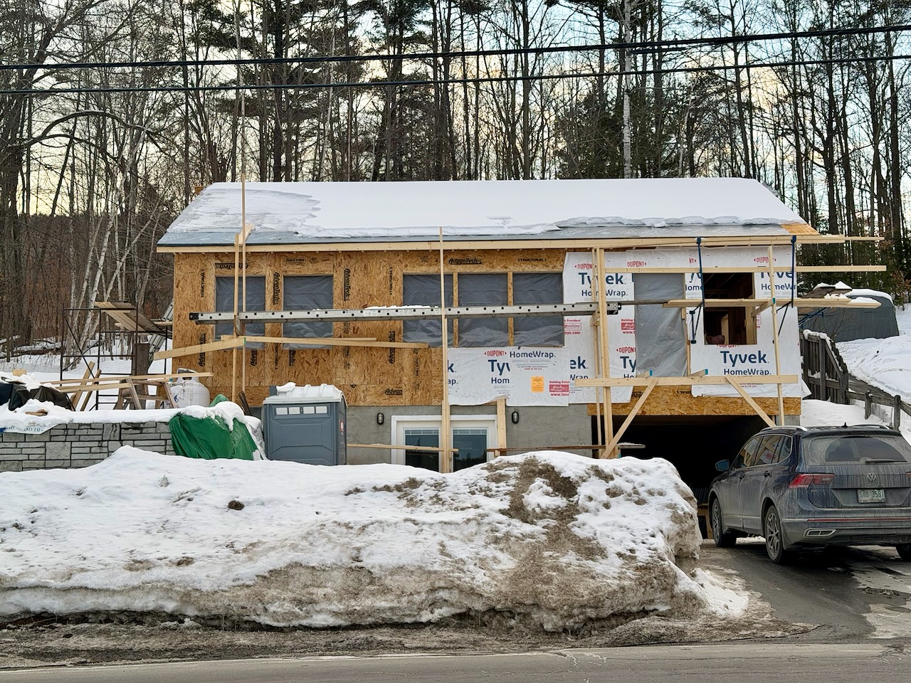 It’s Friday the 27th and we have what looks like a house! Of course….so much more to get done. Framing has to finish, windows, doors, electrical, plumbing, HVAC, insulation, flooring, drywall, paint, roofing, garage slab, garage door, excavation of the driveway down 12″, new asphalt, fencing, landscaping, shed, garage floor covering….but who’s counting?