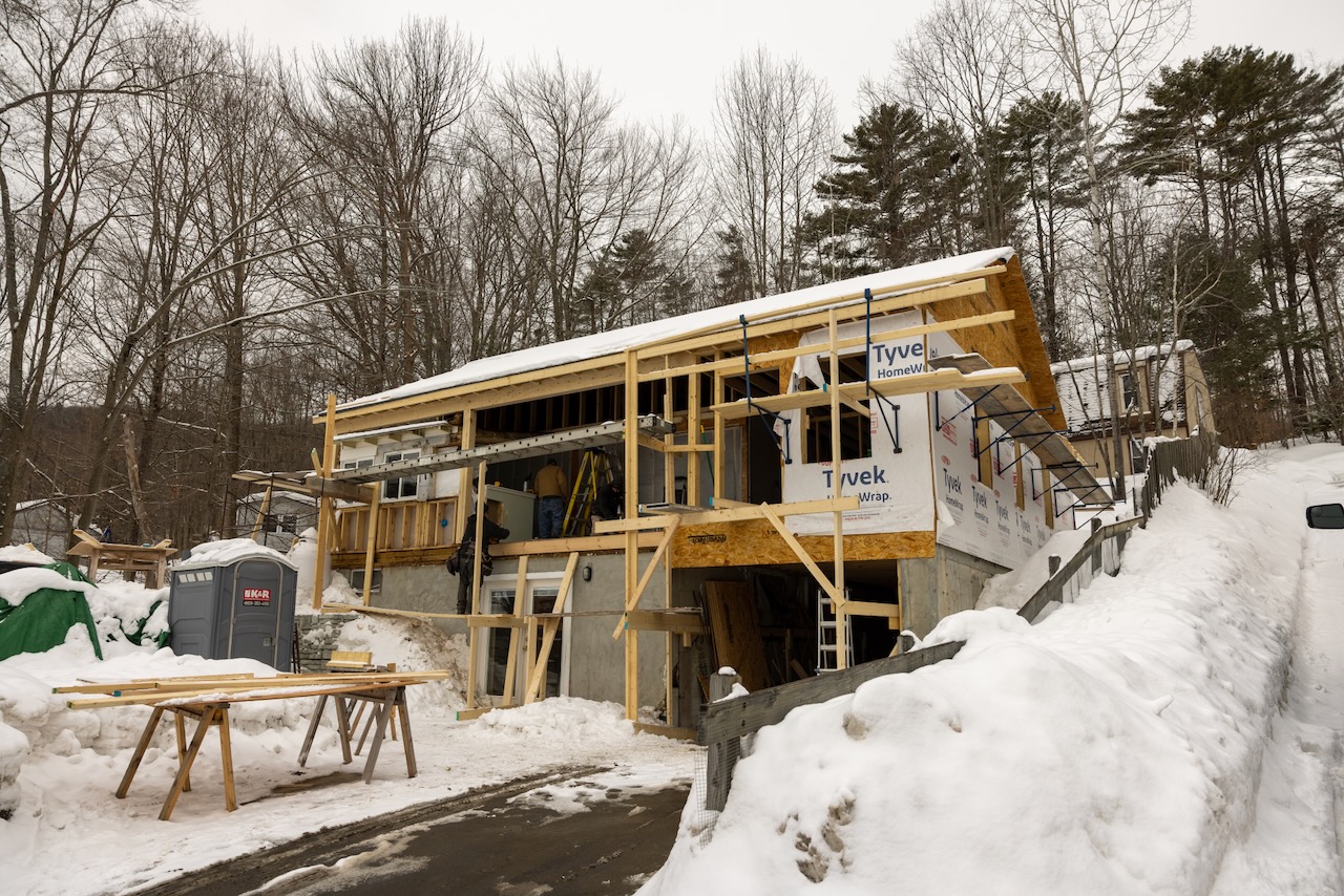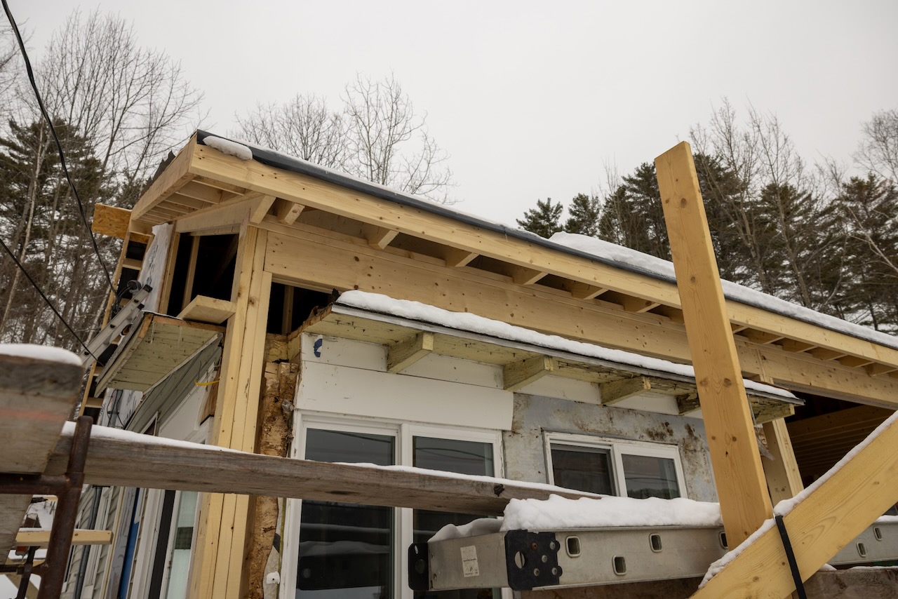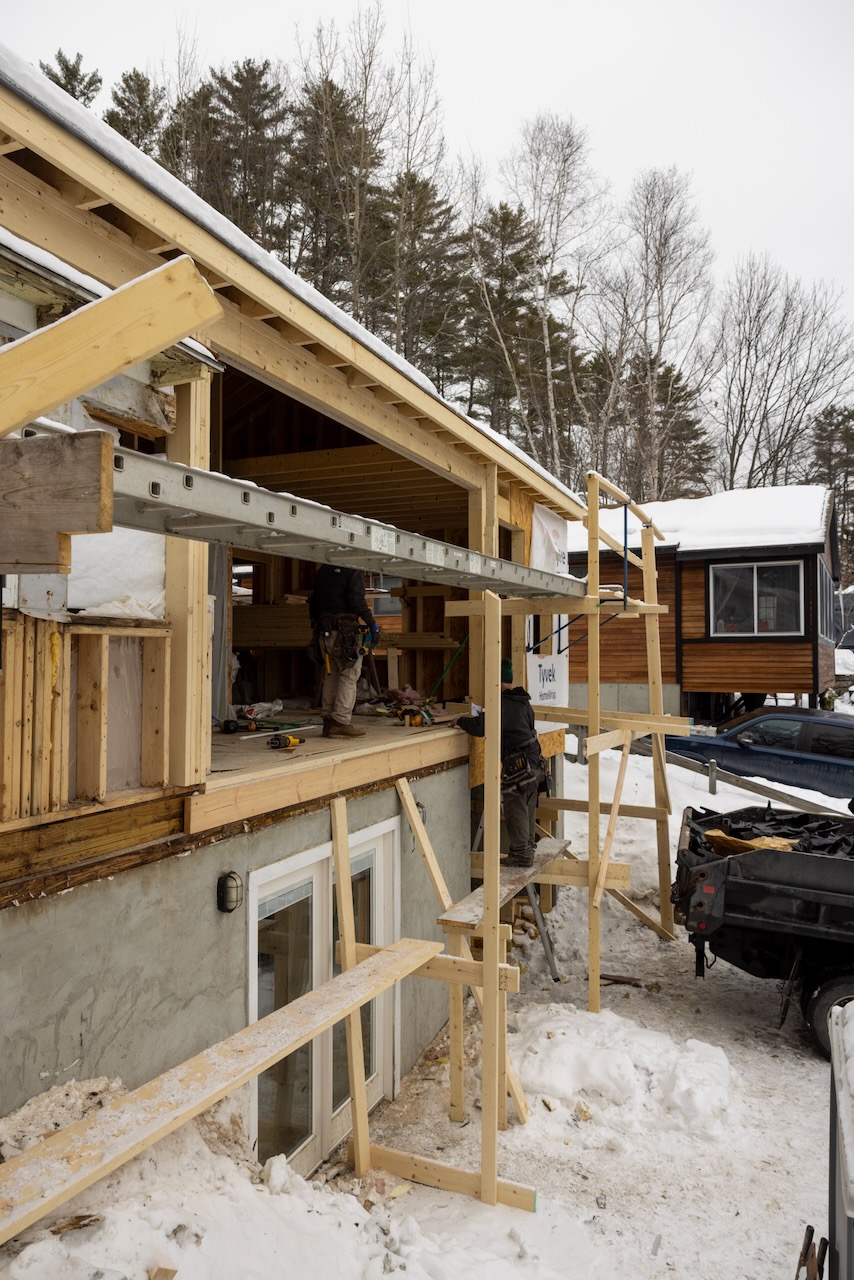We realized a few weeks ago that since we’re doing a stick-built roof, we can do something more custom so we initially pushed for 8′ ceiling from 7′ which is what we initially specified. but once we realized we could go higher, we did! Here’s the crew showing collar ties at 9 feet versus 10.5′ at the front of the house and we went with the higher amount since it’d only cost $250 more to do that with most of that being drywall costs.