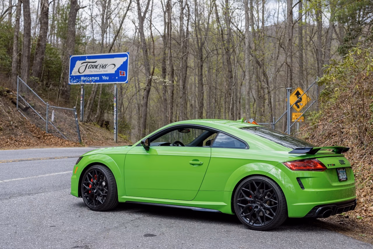 - Green wasn’t my first choice. It was my 3rd but I wanted a 2021/2022 low-mile example that wasn’t black, white or grey. Well that left Blue, Red, Orange, Green or an Audi Exclusive color and after 3 full months, I decided to just go for green. I LOVE the color. It’s grown on me and it really pops. It’s identical to Porsche’s Viper Green or Lamborghini’s Verde Mantis (all 3 companies are owned by Volkswagen Auto Group) but the amount of attention I get is a little tiring. Every single man at gas stations, parking lots and sometimes sidewalks will give me thumbs up, yell “BROOOO!” or ask me about it. I’ve never had complete strangers talk to me and you really have to drive in days you’re having a good day because you will get attention with a bright green 2-door sports car. I underestimated it but it’s real.