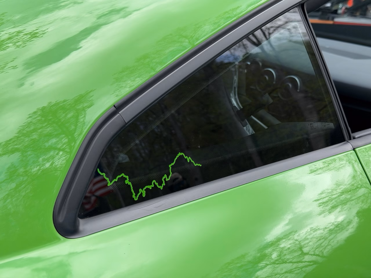 Speaking of attention, a bright green Porsche Macan GTS in Python Green (which is not the same as Viper Green as you can see from the photos), got next to me. The driver gave me an enthusiastic wave and went on her way. There really are so few of these out and about. I took this side by side showing Python Green & Kyalami Green side-by-side: