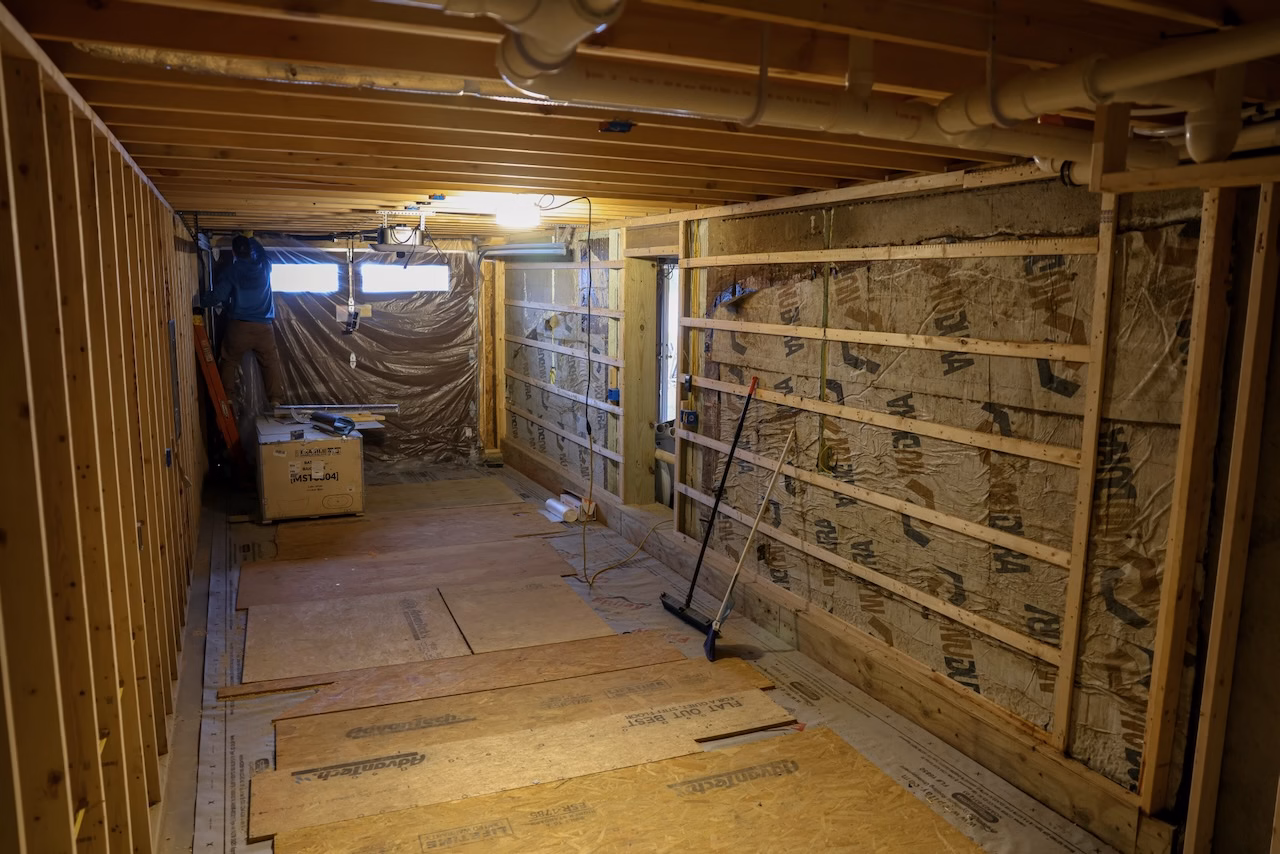 - Basement framing, drywall, flooring